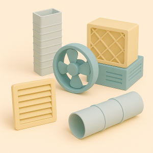 Основные компоненты — воздуховоды, вентиляторы, решётки, клапаны, фильтры и соединительные элементы. Их комбинация зависит от типа помещения и задач.