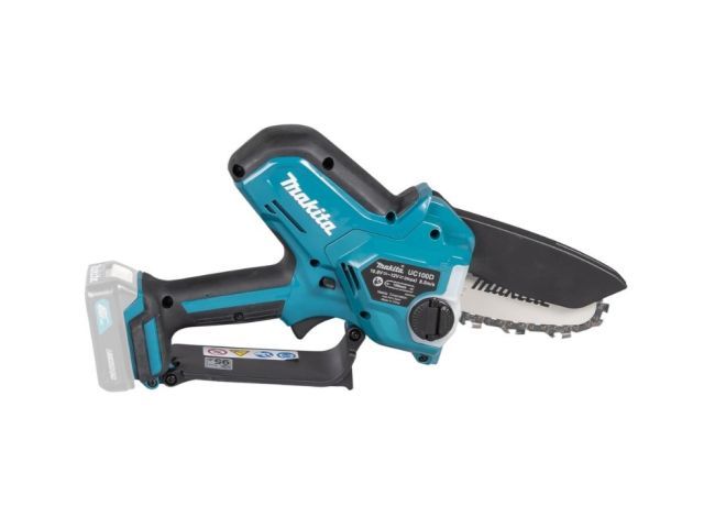 Makita представляет новую цепную пилу для частного применения UC100DZ. Данная цепная пила оснащена бесщеточным двигателем, который выдает максимальную мощность до 320 Вт. Максимальная скорость цепи составляет 8 м/с, а длина шины 10 см. Режущая гарнитура оснащена автоматической подачей масла, объем масленого бака 55 мл. Бесключевое натяжение цепи позволит быстро подтянуть провисшую цепь. Если цепь соскочит с шины, то широкая планка защитит пальцы пользователя.
