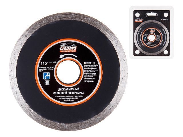 Алмазный круг 115х22 мм по керамике сплошн. GEPARD(мокрая резка, диск)