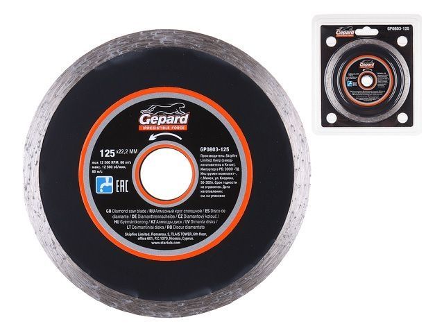 Алмазный круг 125х22 мм по керамике сплошн. GEPARD(мокрая резка, диск)