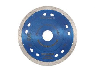 Характеристики Тип :Сплошной Диаметр:125 Инструмент обработки :посадочное отверстие 22,23 mm Обрабатываемый материал:керамогранит, твердая керамика Глубина реза (мм)20 Высота сегмента (мм)8 Толщина кромки (мм)1.1 Назначение: керамогранит, керамика. Особенности: высококачественный миллиметровый алмазный отрезной диск с фланцем, для деликатных работ по керамограниту и твердой керамике. Технология производства: Горячее прессование