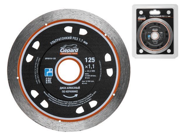 Алмазный круг 125х22 мм по керамике ультратонкий GEPARD(сухая и мокрая резка, тонкий рез 1.1мм, диск)