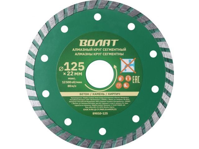 Алмазный круг 125х22 мм универс. Turbo ВОЛАТ(сухая и мокрая резка)