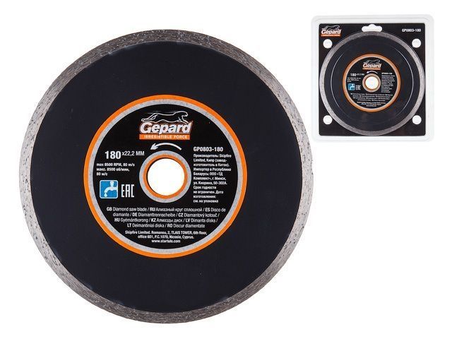 Алмазный круг 180х22 мм по керамике сплошн. GEPARD(мокрая резка, диск)