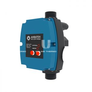 Блок управления насосом Акватек всё для воды предназначен для автоматического управления (включения и выключения) электрическими насосами и защиты насоса от работы без воды в системе водоснабжения домов, коттеджей, дач и других бытовых помещений. Особенности и преимущества: Максимальная мощность насоса 1,5кВт. 2 режима управления: по максимальному и минимальному давлению и по минимальному давлению. Диапазон регулирования давления включения: 0.5-4.5бар, диапазон регулирования выключения: 1,0-8,5бар. Встроенный датчик потока для защиты насосов от "сухого хода" и датчик давления. Информация выводится на ЖК-дисплей.