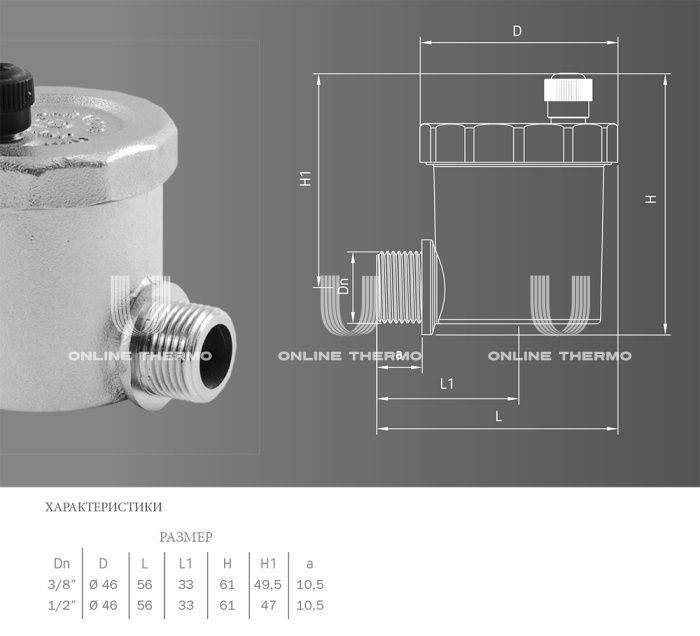 Воздухоотводчик представляет собой автоматический клапан с одним поплавком и выполняет, главным образом, две функции: выпуск плотного потока воздуха из трубопровода (например, во время заполнения/герметизации системы) и дегазацию, которая позволяет выпустить воздух, находящийся в трубопроводе или образовавшийся в нем во время эксплуатации. В сетях и системах искусственного климата применение этого клапана имеет первостепенное значение для спуска воздуха, скопившегося в напорном трубопроводе. Компактные размеры делают клапан пригодным для использования в современных теплогенераторах, когда нужно выпустить воздух из циркуляционных насосов для предотвращения явления кавитации. Технические характеристики: давление герметизации: 0,2 бара (класс A согласно 12266-1); диапазон применения воздухоспускной функции: от 0,5 до 7 бар (колебание ± 10% от макс. установленного значения); диапазон рабочих температур: от 0°C (исключено замерзание) до +110°С.