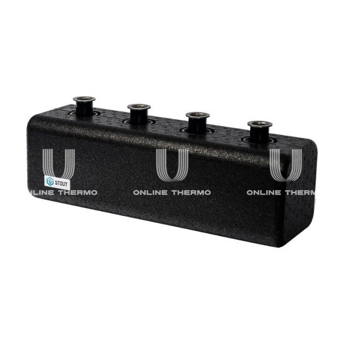 Распределительный коллектор Stout представляет собой одну стальную коробчатую трубу прямоугольного сечения, к которой снизу и сверху соосно приварены парные патрубки (входные и выходные). Внутри трубы выполнены фигурные перегородки для разграничения прямого и обратного потоков теплоносителя и организации распределения его между всеми выходными патрубками коллектора. Зигзагообразная форма перегородок позволяет расположить патрубки вдоль одной оси коллектора. Стальной распределительный коллектор серии SDG-0018 со встроенным гидравлическим разделителем и верхним расположением выходных патрубков, предназначенный для пропорционального распределения тепловых потоков, обеспечивает гидравлическое разделение между первичным и вторичным контурами. Верхние патрубки коллектора оснащены накидными гайками для обеспечения быстрого монтажа насосных узлов и элементов гидромодуля, а нижние имеют наружную резьбу. Благодаря защите коллекторов изоляционным материалом, значительно снижаются тепловые потери, снижаются риски получения ожогов при обслуживании системы. Вне зависимости от конструктивных особенностей, надежность крепления коллекторов к несущим элементам зданий, обеспечивается при помощи кронштейнов, входящих в комплект к каждому коллектору. Распределительные коллекторы Stout являются составляющим элементом групп быстрого монтажа Stout. Предназначены для приема теплоносителя от источника тепловой энергии и его распределения между системами теплопотребления здания. Коллекторы являются основой для соединения всех остальных элементов между собой: гидравлического разделителя, насосных узлов и пр. Модификации коллекторов позволяют компоновать гидромодули самой различной конфигурации. Полная заводская готовность распределительных коллекторов и других элементов обеспечивает быстрый и легкий монтаж системы.
