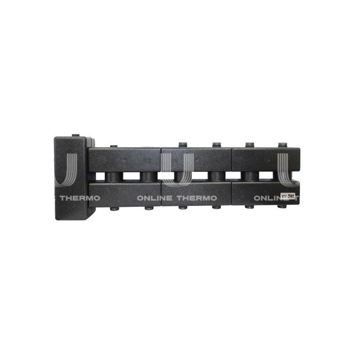 Коллекторы с гидравлическим разделителем для групп быстрого монтажа (далее ГБМ) представляют собой готовое компактное решение, позволяющее просто и быстро собрать распределительный узел. Предназначены для монтажа на них ГБМ, исключения взаимного влияния насосов в контурах системы отопления (котлового, высоко- и низкотемпературных контуров) и распределения потоков теплоносителя в низко- или высокотемпературных системах отопления. Коллекторы с гидравлическим разделителем Uni-Fitt представляют собой неразъёмную конструкцию, включающую гидравлический разделитель и коллекторную группу с отводами, позволяющими подключить ГБМ в положениях «вверх» и «вниз». Для повышения эффективности работы гидравлического разделителя внутри него расположен стабилизатор потока (разделительная перфорированная пластина). Поставляется в теплоизоляционном кожухе.