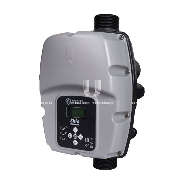 Устройство Sirio Universal STOUT является частотным преобразователем. Предназначено для автоматизации работы однофазных или трёхфазных электронасосов систем водоснабжения, с подключением к бытовой однофазной сети электроснабжения 220В. Устройство изменяет частоту входного тока двигателя насоса, тем самым регулирует скорость его вращения пропорционально фактическому объему воды, потребляемому системой, что обеспечивает значительную экономию электроэнергии. Защищает насос от системных неполадок (отсутствия воды, от повышенного и пониженного напряжения, высокой температуры, перегрузок по току, избыточного давления, постоянных пусков). Устройство Sirio Universal STOUT предназначено для работы с погружными или самовсасывающими поверхностными насосами, с одним насосом или в установках со сдвоенными насосами. Технические характеристики: температура рабочей среды, °С: от 5 до 45; максимальный расход, л/мин: 150; номинальное рабочее давление, бар: 8.