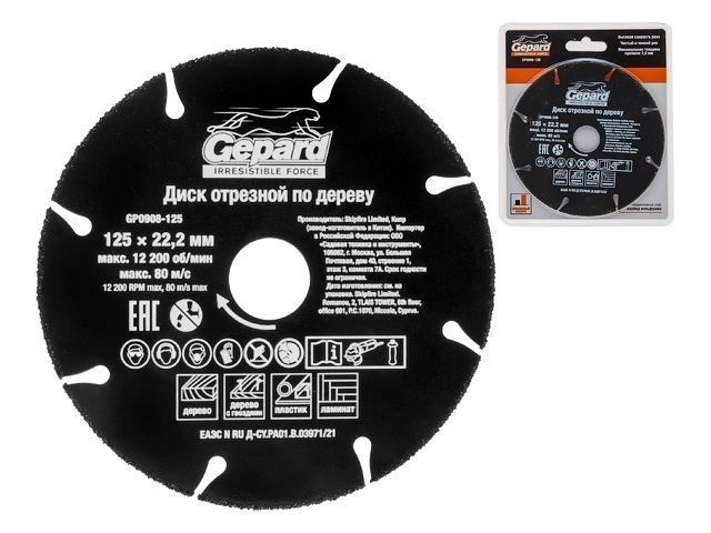 Диск отрезной 125x22.2 мм по дереву GEPARD(ламинату, дереву с гвоздями, для УШМ, пильный, карбид вольфрама)