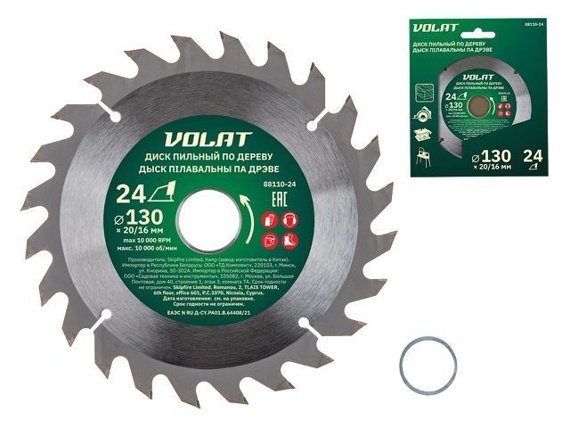 Диск пильный 130х20/16 мм 24 зуб. по дереву ВОЛАТ(твердоспл. зуб)