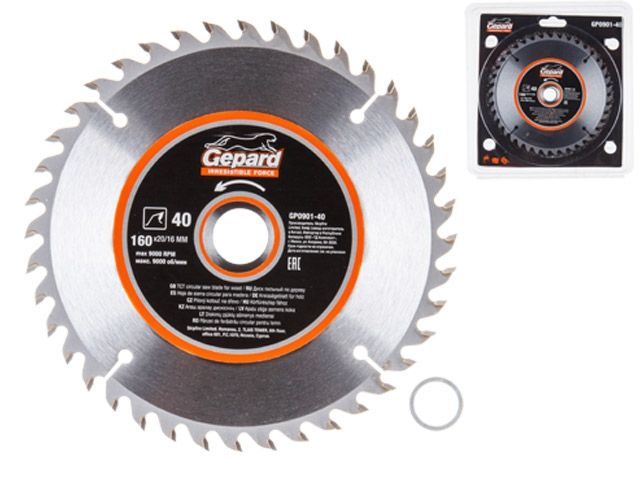 Диск пильный 160х20/16 мм 40 зуб. по дереву GEPARD(твердоспл. зуб)