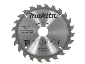Диск пильный по дереву 185x30/20x2.2/1.4 мм, 24T Makita D-51437 служит для использования с дисковой электропилой. Демонстрирует высокую производительность при работе по заготовкам из цельной древесины, древесным столярным плитам. Сочетает высокую скорость пиления и возможность создания чистого реза в материале, не требуя при этом высокой мощности электроинструмента. За счет компенсационных прорезей диск отличается пониженным уровнем вибраций и шума в процессе пиления. У зубьев очень острые края, поэтому они имеют более длительный срок службы, чем стандартные. В комплекте с диском идет переходное кольцо на 20 мм.