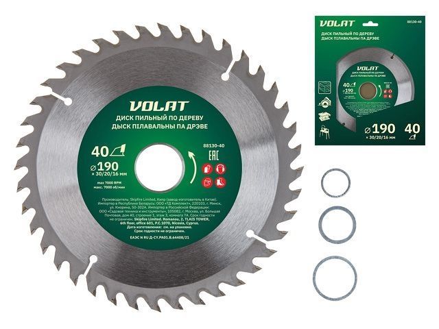 Диск пильный 190х30/20/16 мм 40 зуб. по дереву ВОЛАТ(твердоспл. зуб)
