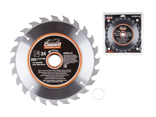 Диск пильный 255х32/30 мм 24 зуб. по дереву GEPARD(твердоспл. зуб)