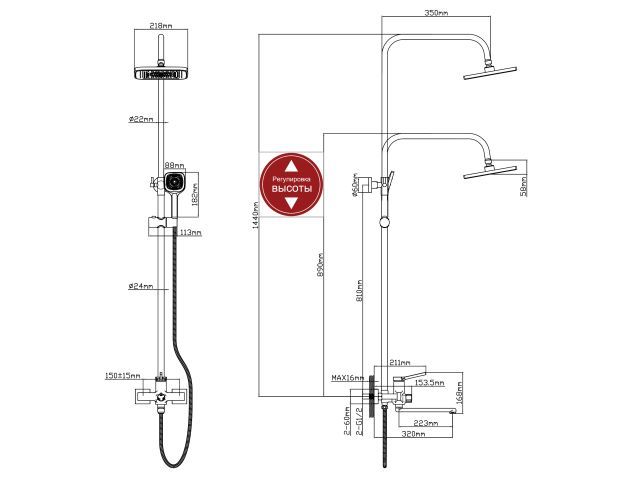 + Верхний душ - 1 шт;