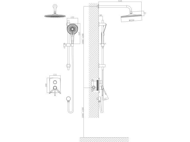 Душевая система (Lt) D35, серия Rose черный + белый, a-five(Встраиваемый, Излива нет, 1000 - 1200 мм.)