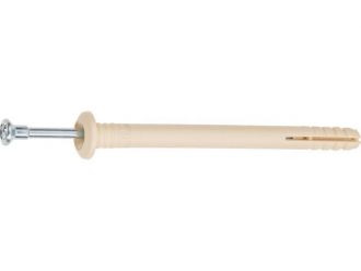 Область применения: сквозной монтаж кронштейнов, дверных коробок, оконных рам, кабельных каналов, обрешетки, гипсокартонных листов (ГКЛ), гипсоволокнистых листов (ГКЛ) и т.д. Материал: нейлон, углеродистая сталь с цинковым покрытием. Особенности: для установки необходимо предварительно просверлить отверстие. Прочность крепежа достигается расклиниванием дюбеля в отверстии гвоздем в момент удара молотком. С помощью крестообразного шлица на головке гвоздя можно легко ослабить или усилить крепеж, демонтировать его. Дюбель-гвоздь с потайным бортиком устанавливается заподлицо, т.е. его шляпка утапливается, благодаря чему возможно производить крепежные работы без последующего выравнивания поверхности. Материал применения: бетон, полнотелый кирпич, пустотелый кирпич, камень, газобетон.