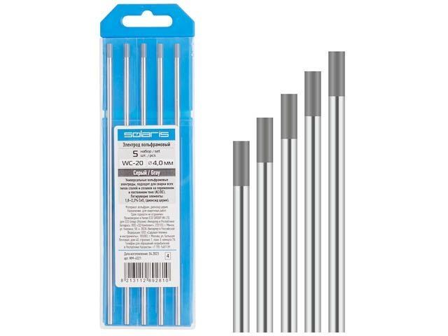 Электрод вольфрамовый серый WC-20, Ф 4,0 мм (набор 5 шт) SOLARIS