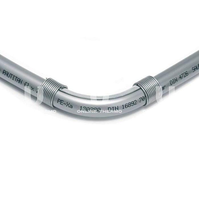 Фиксатор поворота 90° с кольцами (направляющий отвод) Rehau Rautitan служит для жесткой фиксации поворота трубы под углом 90°. Часто устанавливается в местах подведения к коллекторному шкафу или приборам отопления, служит надежной защитой трубы от механических повреждений в месте изгиба трубы. Фиксатор изготовлен из оцинкованной стали в виде изогнутого желоба, укомплектован двумя пружинными кольцами.