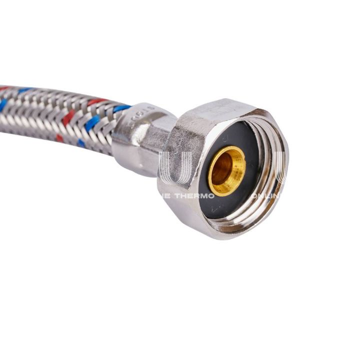 Для того, чтобы соединить линию водоснабжения с устройством подачи, чаще всего используется гибкая подводка для воды – прочный армированный шлаг с износостойкой оплеткой. Такая подводка относится к группе расходных материалов, так как довольно часто выходит из строя. К тому же у нее шире спектр рабочих температур и она устойчива к изнашиванию, сжатию, излому и горению. Внутренний шланг гибкой подводки STOUT изготовлен из экологичного материала - EPDM (пищевой). EPDM- материал повышенной плотности (монолитный), обеспечивает высокую износоустойчивость (большее количество циклов работы). Латунь, используемая в производстве гибкой подводки - пищевая (латунь специальная, ЛС), в ней меньшее содержание Zn, Pb. Высокое качество запрессовки втулки из нержавеющей стали к шлангу дает 100% защиту от протечек. Технические характеристики: давление разрыва, бар: 20; диаметр Вн/Нар резинового рукава, мм: 8,5/11; внутренний диаметр ниппеля, мм: 6,2; расход среды через подводку на излив при давлении на входе Рраб=3 бар, л/мин: 28; минимальный радиус изгиба и расстояние от изгиба до ниппелей, мм: 48.