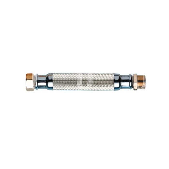 Гибкие подводки предназначены для присоединения оборудования (водонагреватели, напорные агрегаты, кондиционеры) к транспортирующей воду сети технического водоснабжения, отопления и кондиционирования. Технические характеристики: максимальная рабочая температура, °C: 90; максимальное рабочее давление, бар: 16; внутренний шланг из резины EPDM; оплетка из нержавеющей стали AISI 304; металлический наконечник из нержавеющей стали AISI 304 (3/4”, 1”); металлический наконечник из оцинкованного железа (1 1/4”, 1 1/2”, 2”); латунные концевые фитинги.