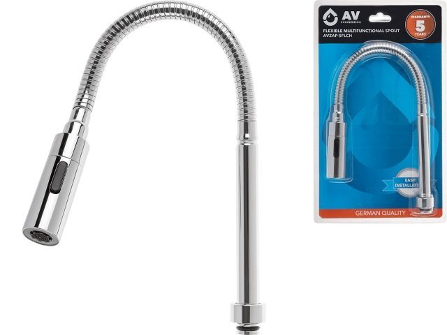 Излив гибкий с двухрежимной лейкой для смесителя, хром, AV Engineering(Диаметр подключения 3/4')