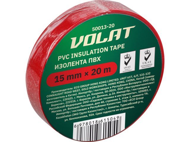 Изолента ПВХ 15ммх20м красная ВОЛАТ(130 мкм)