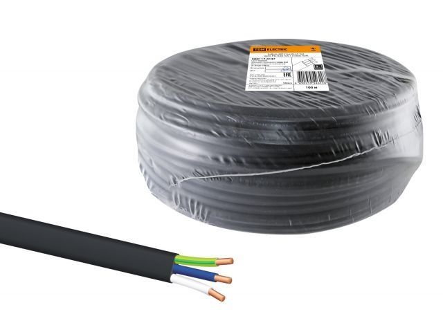 Кабель ВВГ-П нг(А)-LS 3х4 ок(N, PE)-0,66 ГОСТ (100м) TDM(черный)
