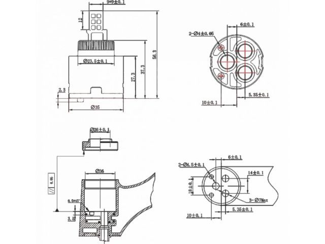 Картридж D35 для смесителя, тип A-S, AV Engineering(Переключение ступенчатое)