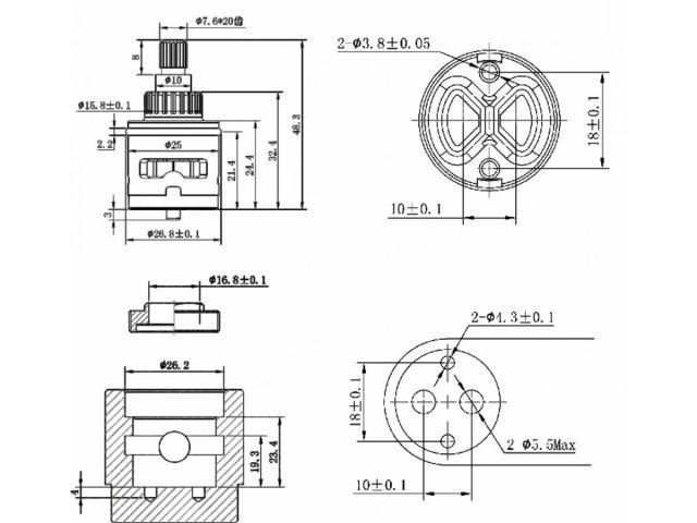 Картридж-дивертор D25 для смесителя, тип E, AV Engineering(2 выхода)