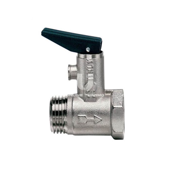 Предохранительный клапан для бойлера Itap серии 367 служит для защиты бойлера от перепадов давления внутри него из-за нагрева воды. В баке периодически повышается давление из-за нагрева воды и образования пара. При превышении установленного давления клапан приоткрывается и происходит сброс избытка воды через специальное отверстие. Для того, чтобы избежать течи этой воды на пол, рекомендуется присоединять небольшой шланг к отверстию для дальнейшего слива. Также клапан оснащен обратным клапаном и используется для предотвращения возврата воды из бойлера в систему холодного водоснабжения дома. Общие характеристики: • Корпус: никелированная латунь • Уплотнения: NBR • Пружина: нержавеющая сталь AISI 302 • Резьбовое соединение: UNI EN ISO228 • Седло: нейлон • Установка: 8.5 бар • Максимальная рабочая температура: 120°C • Максимальное рабочее давление: 10 бар