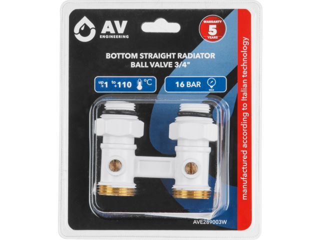 Клапан прямой шаровый 3/4' нар. для радиатора (мультифлекс), Белый, AV Engineering (инд. упак.)