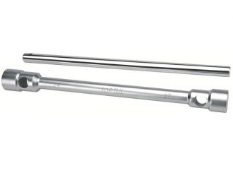 Баллонный ключ с воротком. Предназначен для отворачивания колесных болтов размером 27 мм и 30 мм. Ключ выполнен в серебристом цвете. Изготовлен он из высококачественной стали, которая придаёт ему максимальную прочность и надёжность. Длина ключа: 406мм