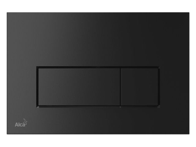 Двойной смыв, механический принцип действия Совместимость со всеми скрытыми системами инсталляции Alcaplast Поверхностная отделка: черный матовый Материал: пластик