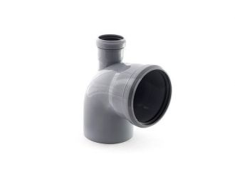 Отвод канализационный диаметром 110 мм под углом 87 градусов для монтажа систем внутренней канализации. Имеет выход назад для трубы диаметром 50 мм