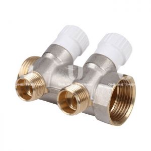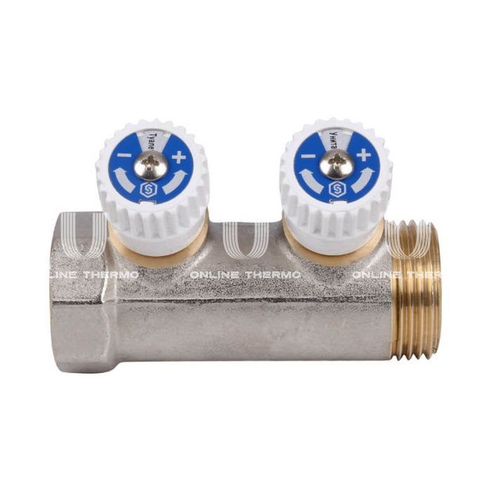 Коллектор распределительный с запорными клапанами Stout 1", 2 отвода 1/2"
