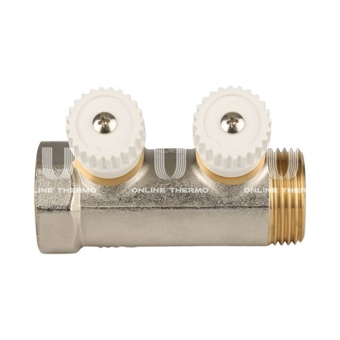 Коллектор распределительный с запорными клапанами Stout 1", 2 отвода 3/4"ЕК