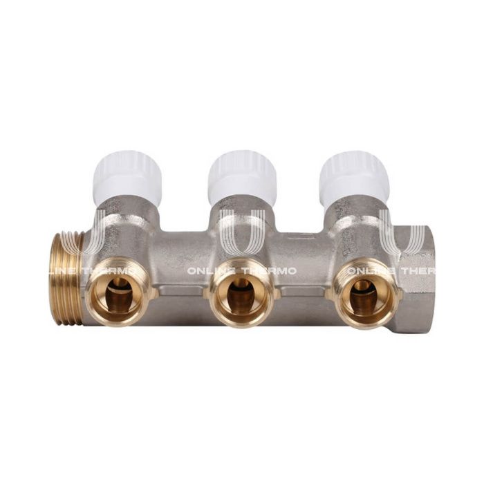 Коллектор распределительный с запорными клапанами Stout 1", 3 отвода 1/2"