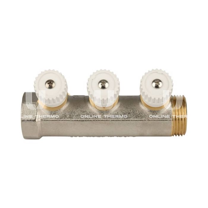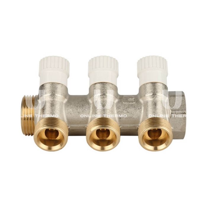 Коллектор распределительный с запорными клапанами Stout 1", 3 отвода 3/4"ЕК