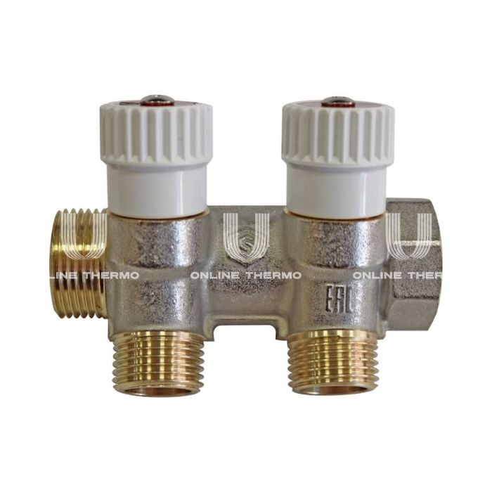 Коллектор распределительный с запорными клапанами Stout 3/4", 2 отвода 1/2" плоское уплотнение