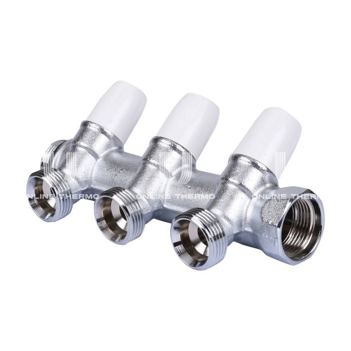 Коллектор распределительный с запорными клапанами Tiemme Maxima 1860013 ВР-НР 1" , на 3 контура НР 3/4", модульный, конусное соединение, хромированный