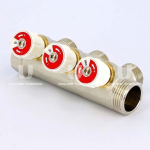Коллектор распределительный с запорными клапанами Uni-fitt 406N4330, 1" ВР-НР, на 3 контура 3/4" НР, модульный, конусное соединение