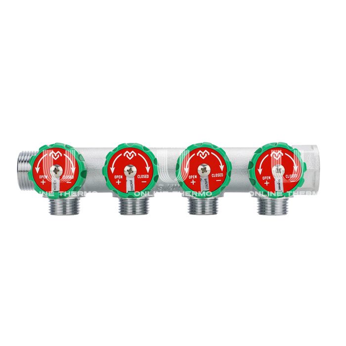 Коллектор регулирующий Varmega VM14614, 3/4", на 4 выхода 3/4"ЕК, хромированный