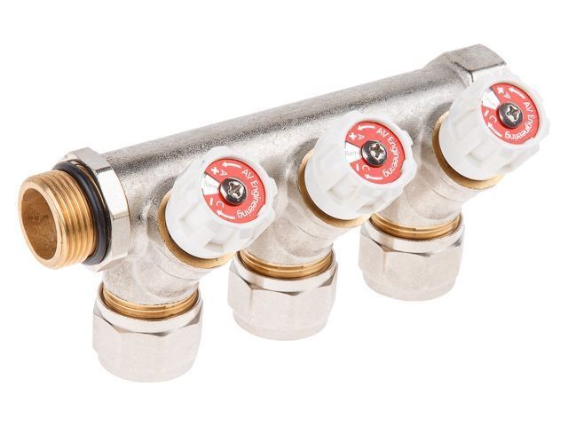 Коллектор с отсекающими вентилями, 3/4' х 3 вых. (16 х 2.0), AV Engineering
