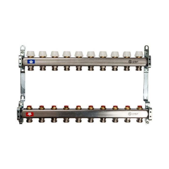 Коллектор Stout из нержавеющей стали без расходомеров 10 вых.