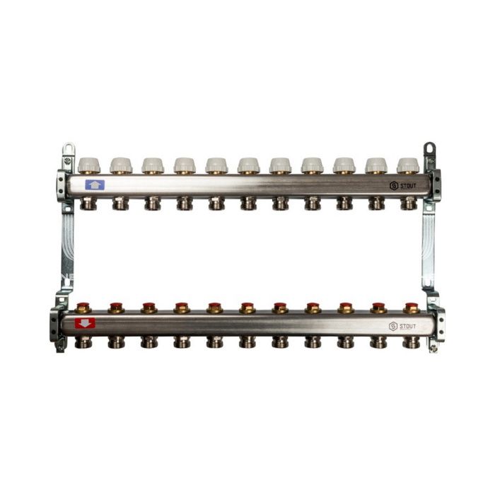 Коллектор Stout из нержавеющей стали без расходомеров 11 вых.