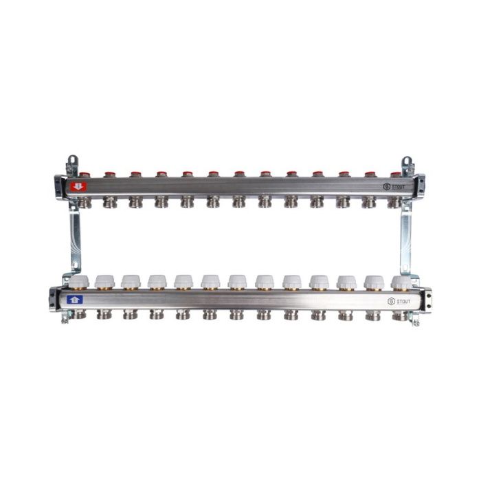 Коллектор Stout из нержавеющей стали без расходомеров 13 вых.