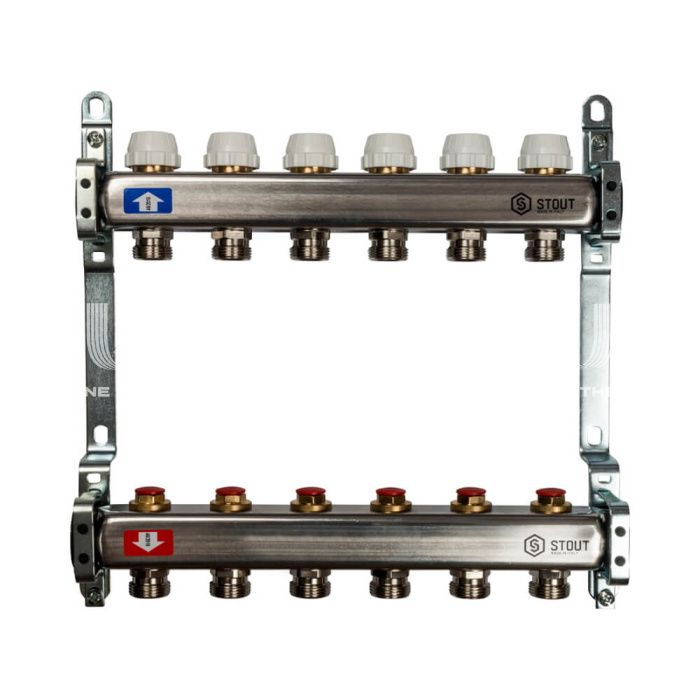 Коллектор Stout из нержавеющей стали без расходомеров 6 вых.