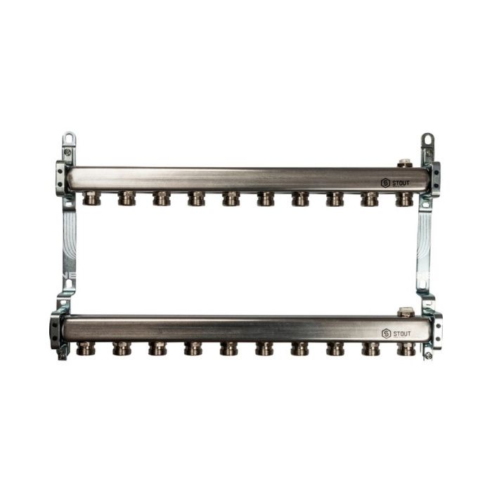 Коллектор Stout из нержавеющей стали для радиаторной разводки 10 вых.
